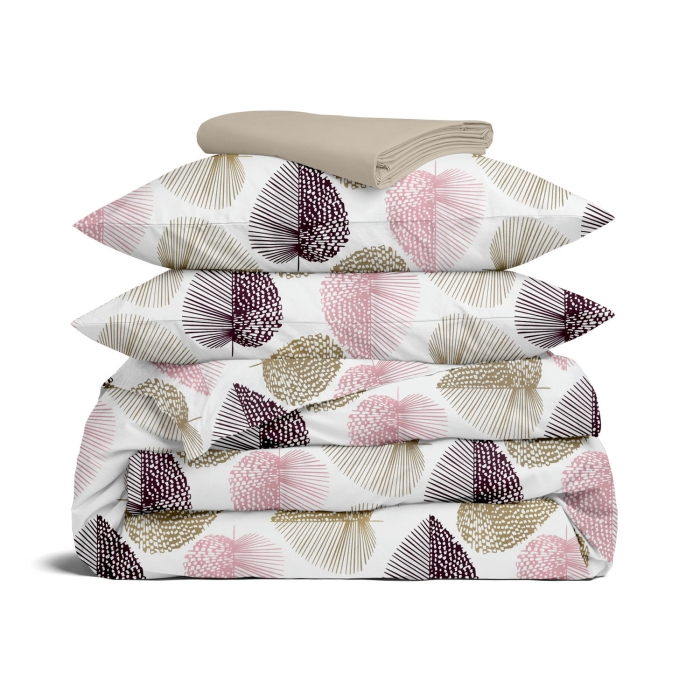 Двоспальна постільна білизна з простирадлом на резинці PASTEL LEAVES
