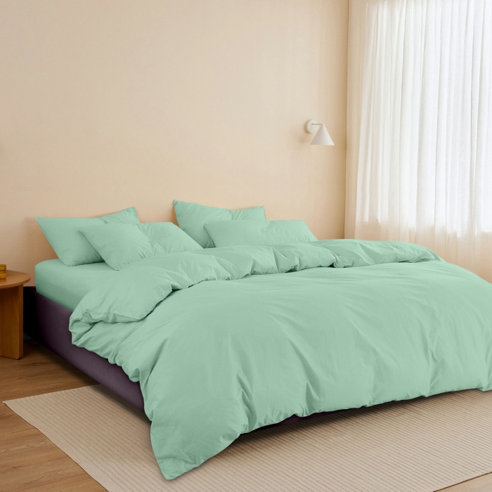 Двоспальна постільна білизна з простирадлом на резинці PISTACHIO