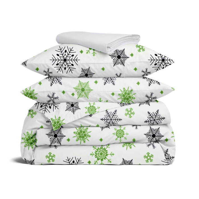 Двоспальна постільна білизна з простирадлом на резинці SNOWFLAKES
