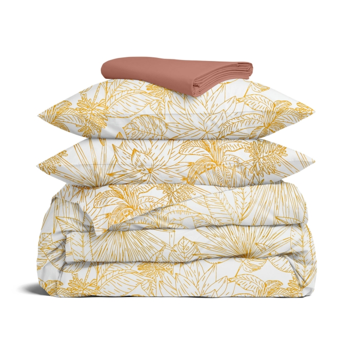Двоспальна постільна білизна з простирадлом на резинці TROPICAL LEAVES
