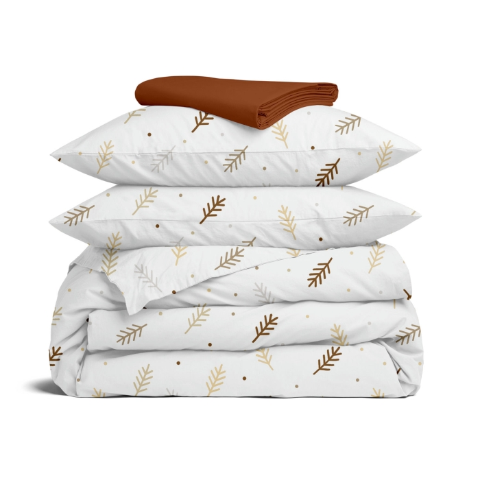 Двоспальна постільна білизна з простирадлом на резинці AUTUMN BRANCHES CS3