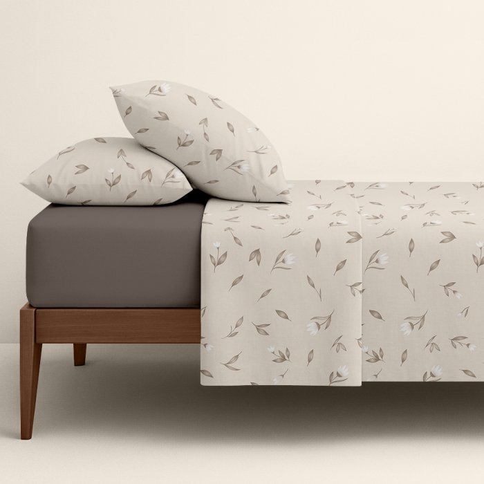 Двоспальна постільна білизна з простирадлом на резинці BEIGE FLORAL CS3