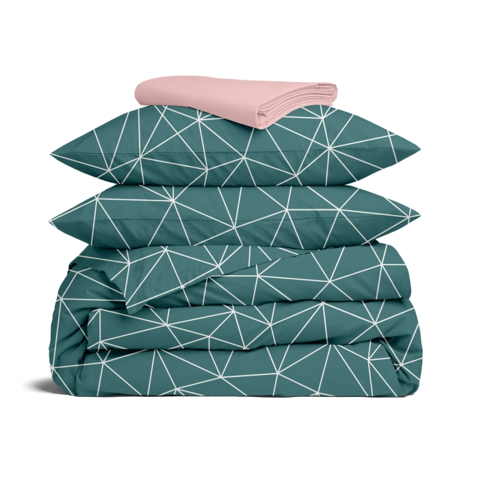 • Практичність: двоспальний комплект включає простирадло з бавовни на резинці, що не ковзає, не мнеться, легко прасується.