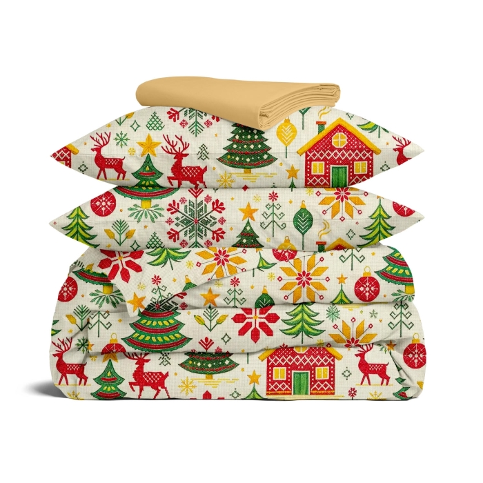 Двоспальна постільна білизна з простирадлом на резинці CHRISTMAS
