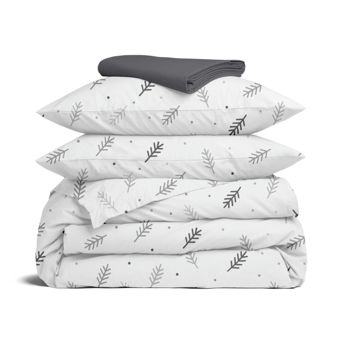 Двоспальна постільна білизна з простирадлом на резинці FROST BRANCHES CS7