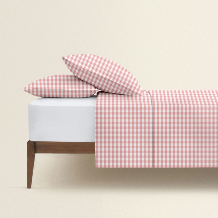 Двоспальна постільна білизна з простирадлом на резинці PINK CHECK CS1