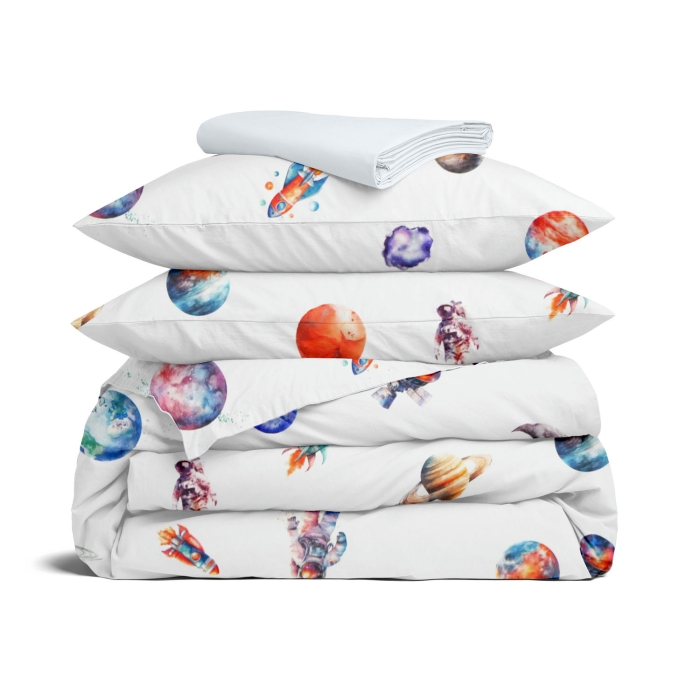 Двоспальна постільна білизна з простирадлом на резинці SPACE DREAM CS3
