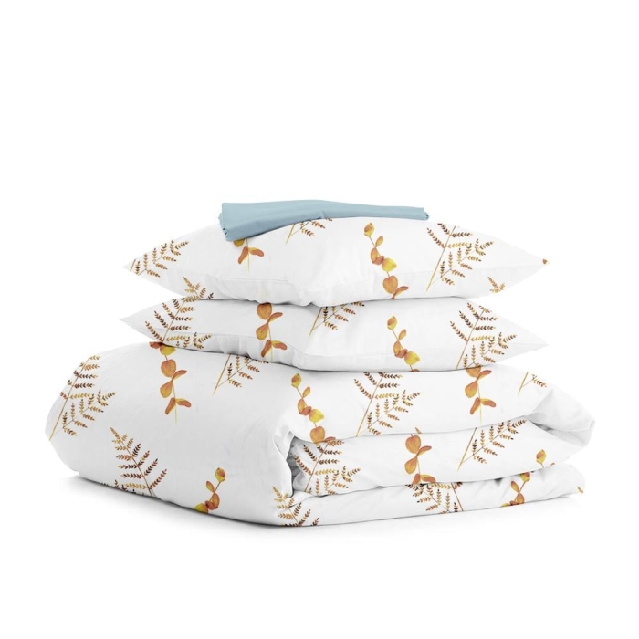 Двоспальна постільна білизна з простирадлом на резинці AMBER FOLIAGE CS5