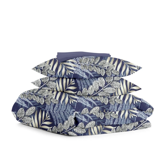 Двоспальна постільна білизна з простирадлом на резинці BLUE FOLIAGE CS1