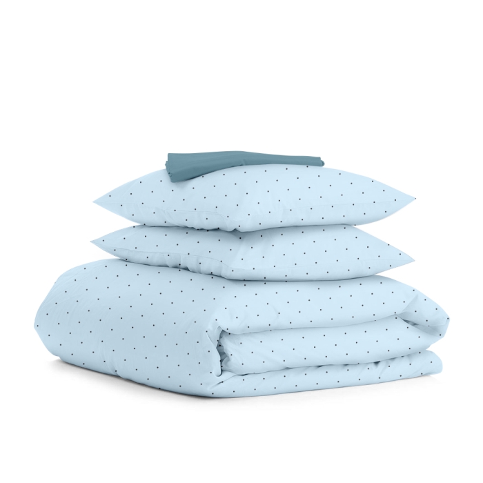 Двоспальна постільна білизна з простирадлом на резинці MINI DOTS CS13