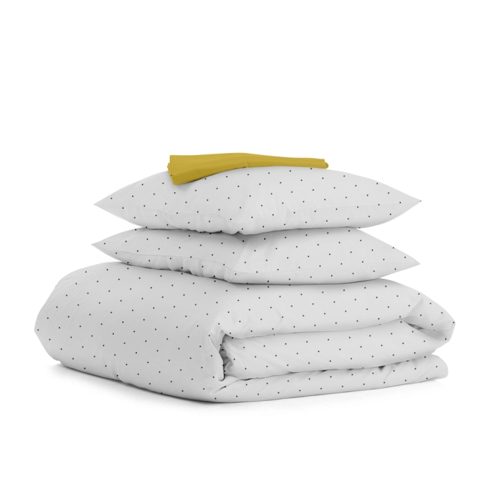 Двоспальна постільна білизна з простирадлом на резинці MINI DOTS CS35