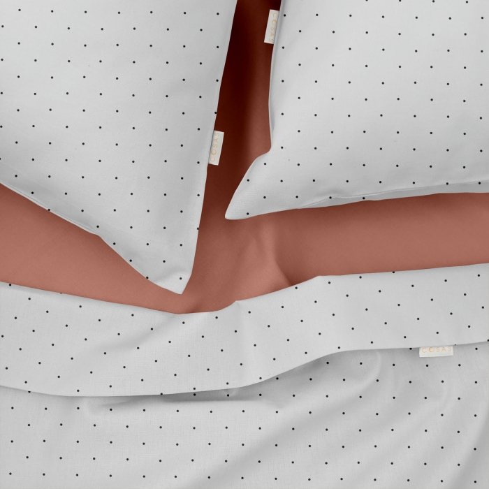 Двоспальна постільна білизна з простирадлом на резинці MINI DOTS CS36