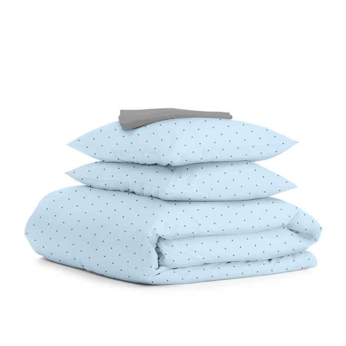 Двоспальна постільна білизна з простирадлом на резинці MINI DOTS CS37