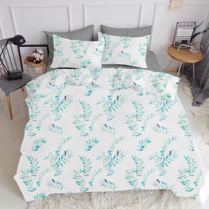 Двоспальна постільна білизна з простирадлом на резинці MINT FOLIAGE CS1