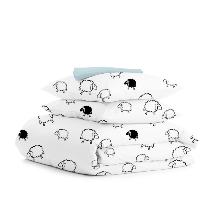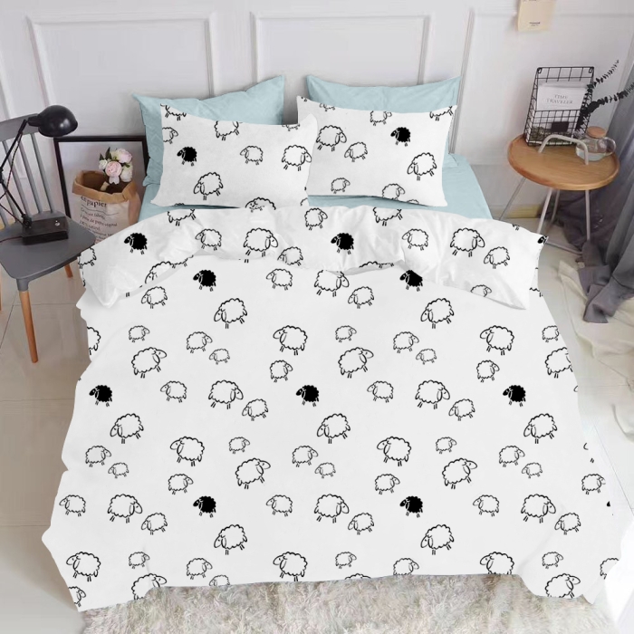 Двоспальна постільна білизна з простирадлом на резинці SHEEP BLACK CS4
