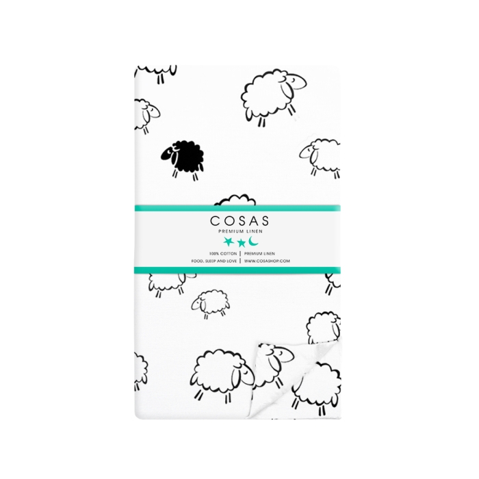 Двоспальна постільна білизна з простирадлом на резинці SHEEP BLACK CS6
