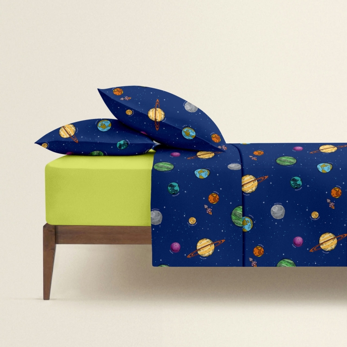 Двоспальна постільна білизна з простирадлом на резинці SPACE CS7
