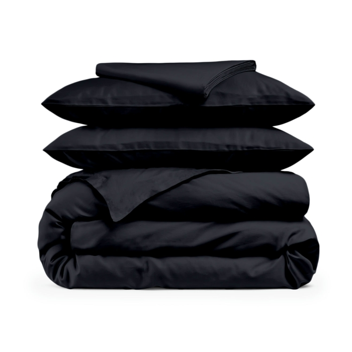 Двоспальна постільна білизна сатин з простирадлом на резинці BLACK CS1