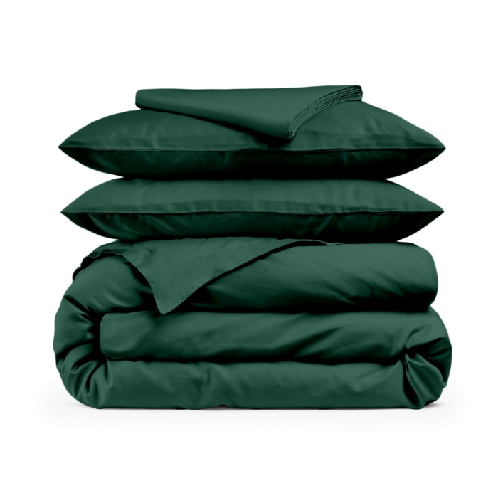 Двоспальна постільна білизна сатин з простирадлом на резинці MALACHITE