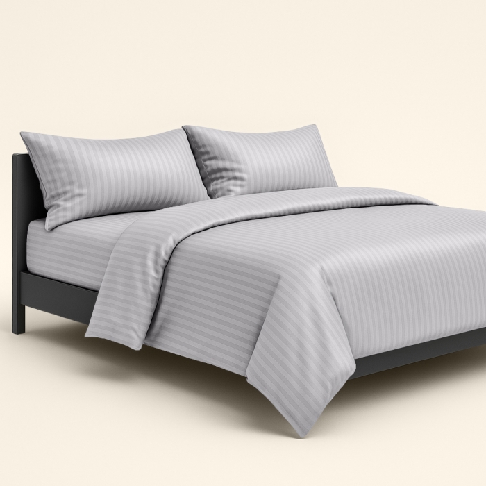 Двоспальна постільна білизна сатин з простирадлом на резинці SILVER CS2