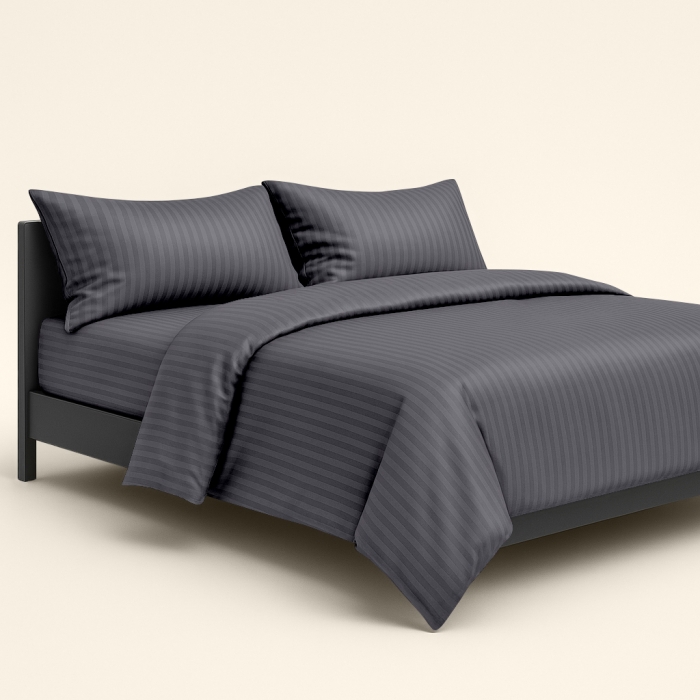 Двоспальна постільна білизна сатин з простирадлом на резинці STONE CS2