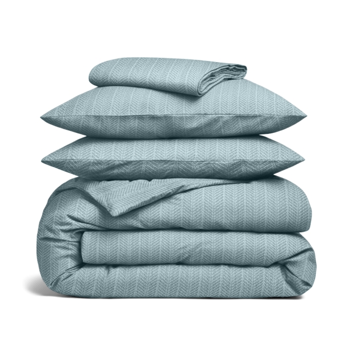 У комплекті — простирадло з вареної бавовни, що відрізняється особливою м’якістю та легкістю догляду. Варена бавовна проходить делікатну обробку паром, завдяки чому тканина стає пухкішою, не потребує прасування та має природний розслаблений вигляд.