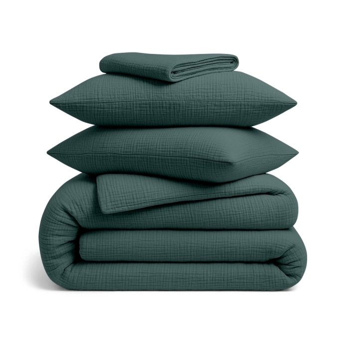 Двоспальна постільна білизна COSAS з 4-шарового мусліну — запорука здорового та комфортного сну.