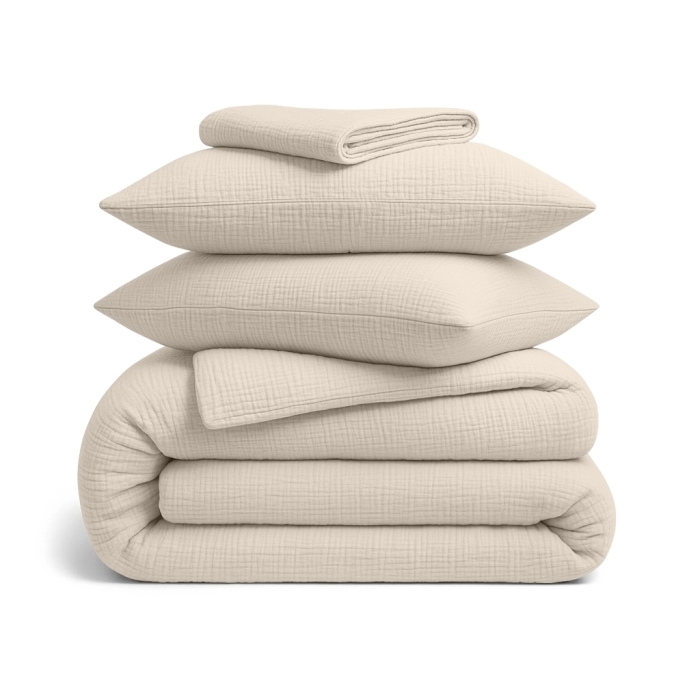 Двоспальна постільна білизна COSAS з 4-шарового мусліну — запорука здорового та комфортного сну.