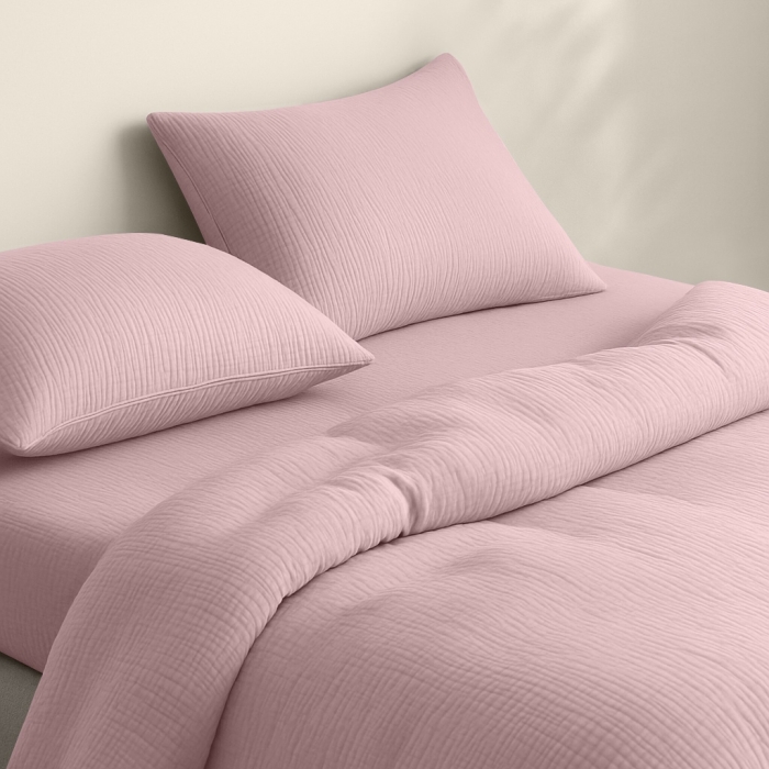 Двоспальна постільна білизна COSAS з 4-шарового мусліну — запорука здорового та комфортного сну.