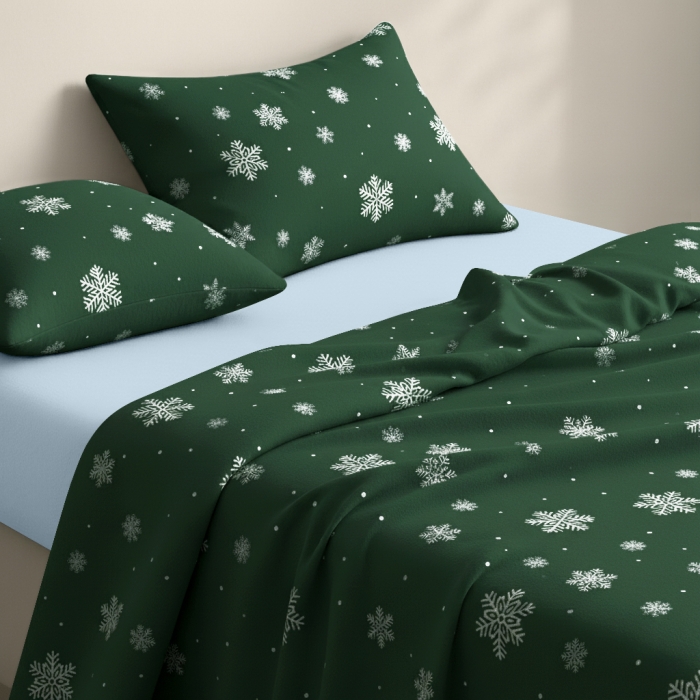 Євро постільна білизна фланель з простирадлом на резинці SNOWFLAKES FOREST CS2