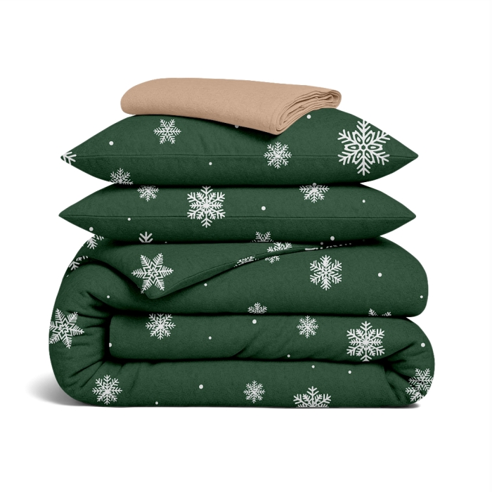 Євро постільна білизна фланель з простирадлом на резинці SNOWFLAKES FOREST CS3