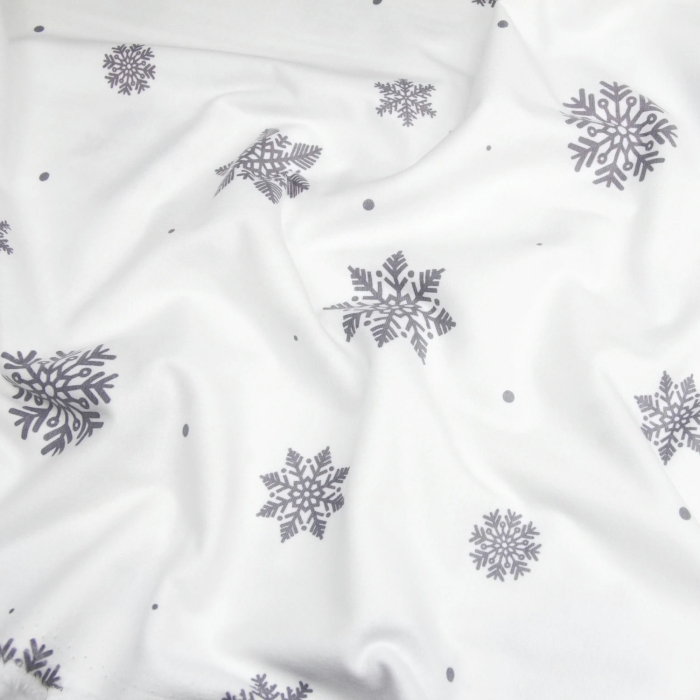 Євро постільна білизна фланель з простирадлом на резинці SNOWFLAKES SILVER CS6