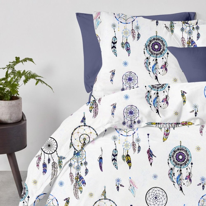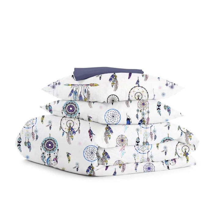 Євро постільна білизна з простирадлом на резинці BLUE DREAMCATCHER CS1