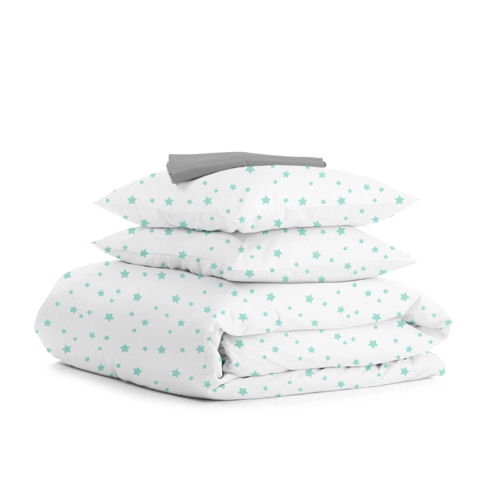 Євро постільна білизна з простирадлом на резинці STARFALL MINT CS1