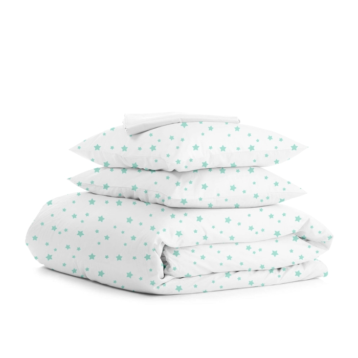 Євро постільна білизна з простирадлом на резинці STARFALL MINT CS2