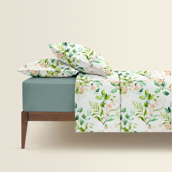 Євро постільна білизна з простирадлом на резинці FLORAL LEAVES CS1