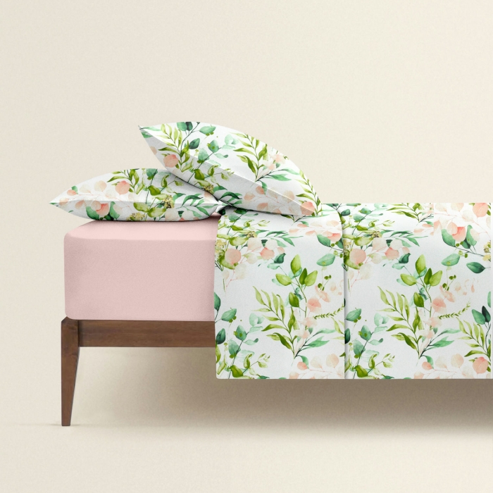 Євро постільна білизна з простирадлом на резинці FLORAL LEAVES