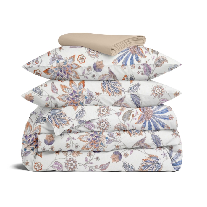 Євро постільна білизна з простирадлом на резинці FLORAL ORNAMENT CS2