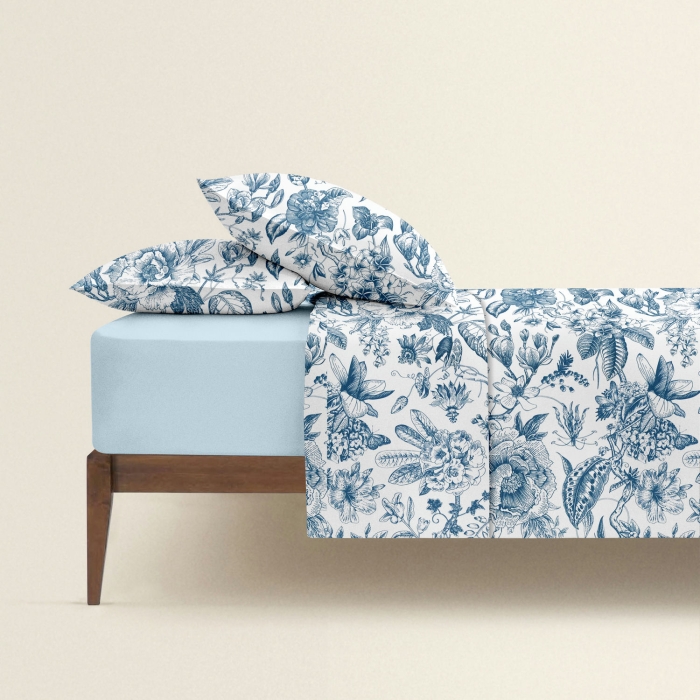 Євро постільна білизна з простирадлом на резинці SWEDISH FLORAL CS4