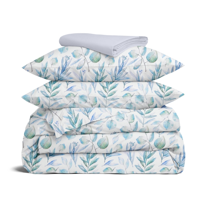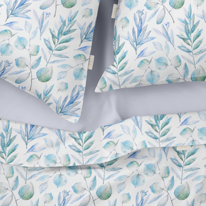 Євро постільна білизна з простирадлом на резинці BLUE LEAVES CS3