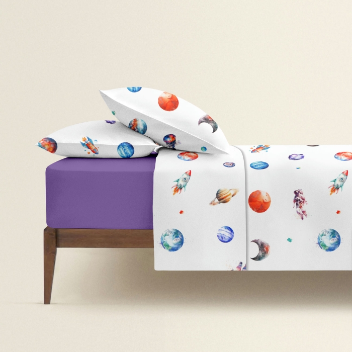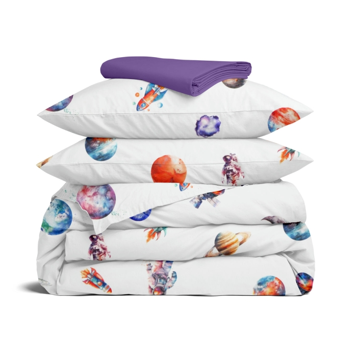Євро постільна білизна з простирадлом на резинці SPACE DREAM CS1
