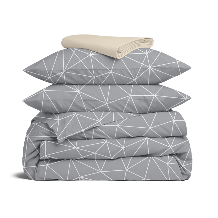 Євро постільна білизна з простирадлом на резинці STONE LINES