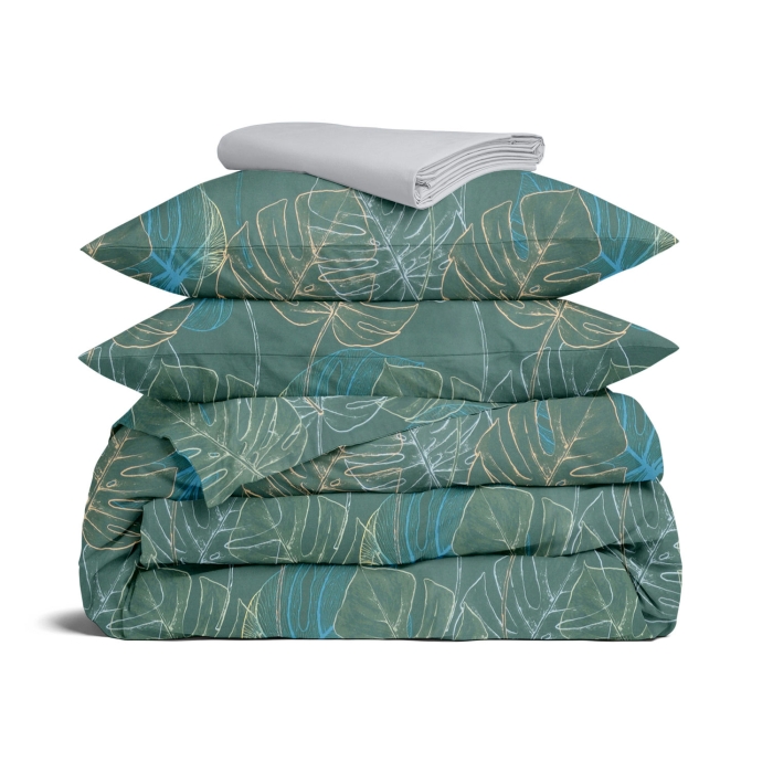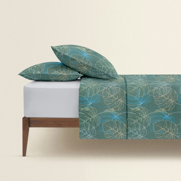 Євро постільна білизна сатин з простирадлом на резинці TROPICAL CALM CS5