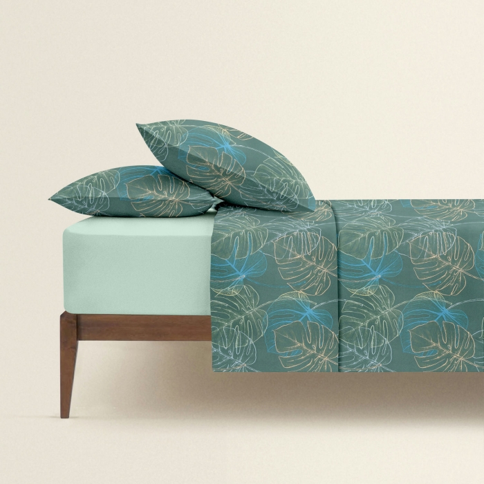 Євро постільна білизна сатин з простирадлом на резинці TROPICAL CALM