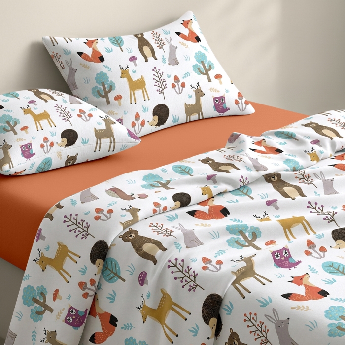 Підліткова постільна білизна фланель з простирадлом на резинці ANIMALS MUSHROOMS