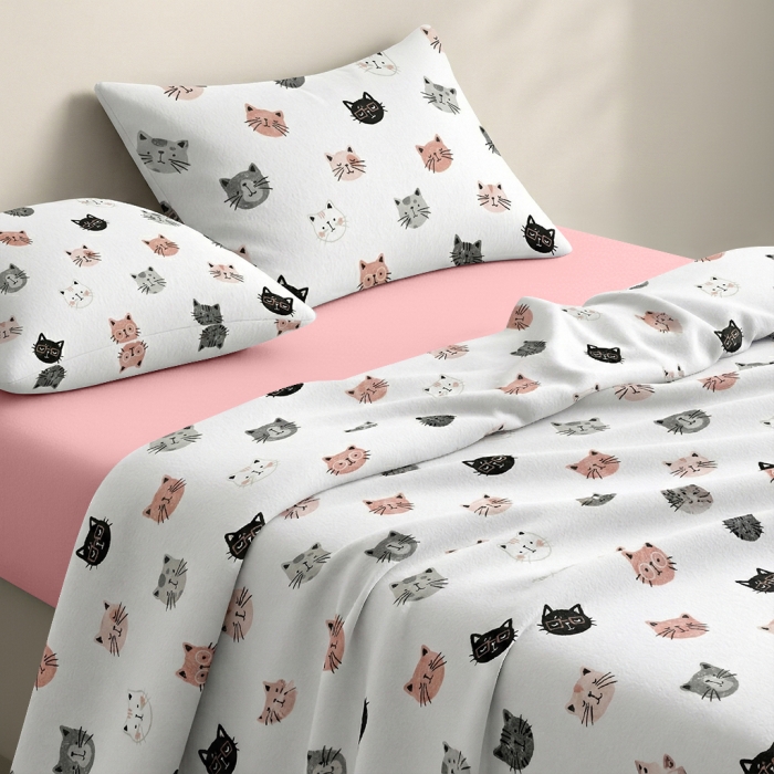 Підліткова постільна білизна фланель з простирадлом на резинці PLAYFUL CATS CS3