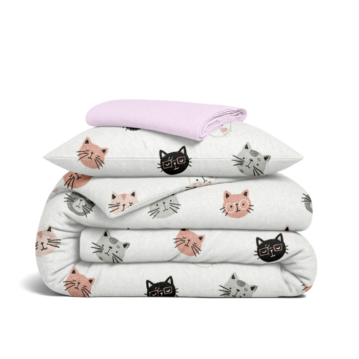 Підліткова постільна білизна фланель з простирадлом на резинці PLAYFUL CATS CS4