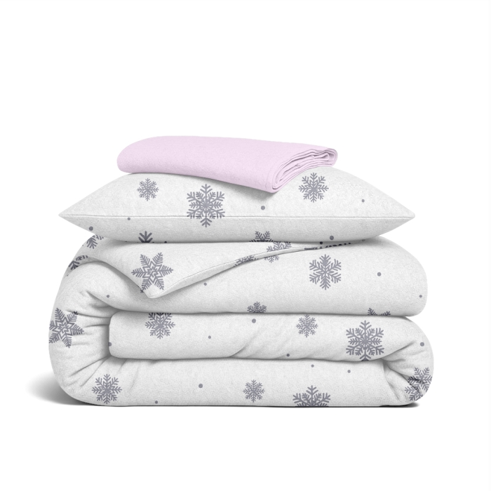 Підліткова постільна білизна фланель з простирадлом на резинці SNOWFLAKES SILVER CS5
