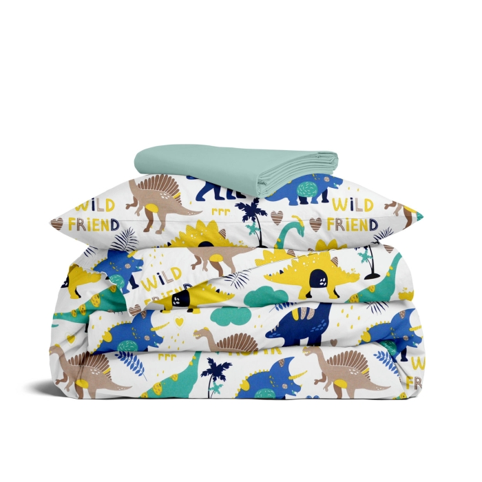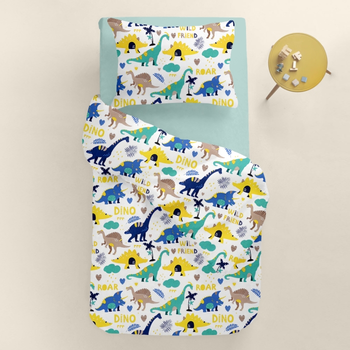 Підліткова постільна білизна з простирадлом на резинці DINOSAURS CS10