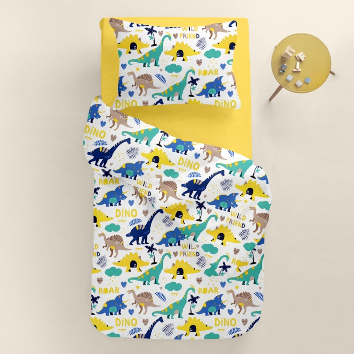 Підліткова постільна білизна з простирадлом на резинці DINOSAURS CS12